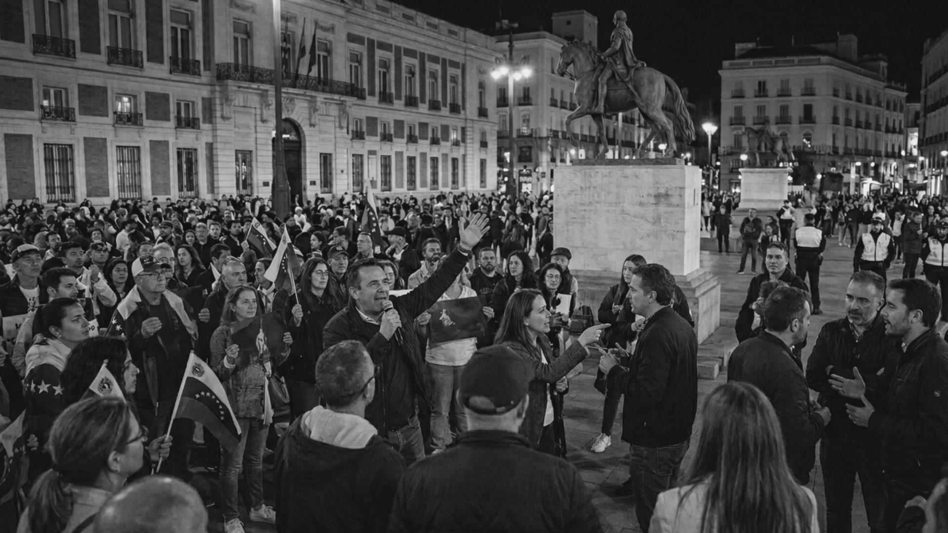 El pasado sábado 18 de abril de 2026, en la Puerta del Sol de Madrid, en el marco de una concentración celebrada con motivo de la visita de una figura política venezolana, se produjeron una serie de intervenciones públicas que han generado un intenso debate.